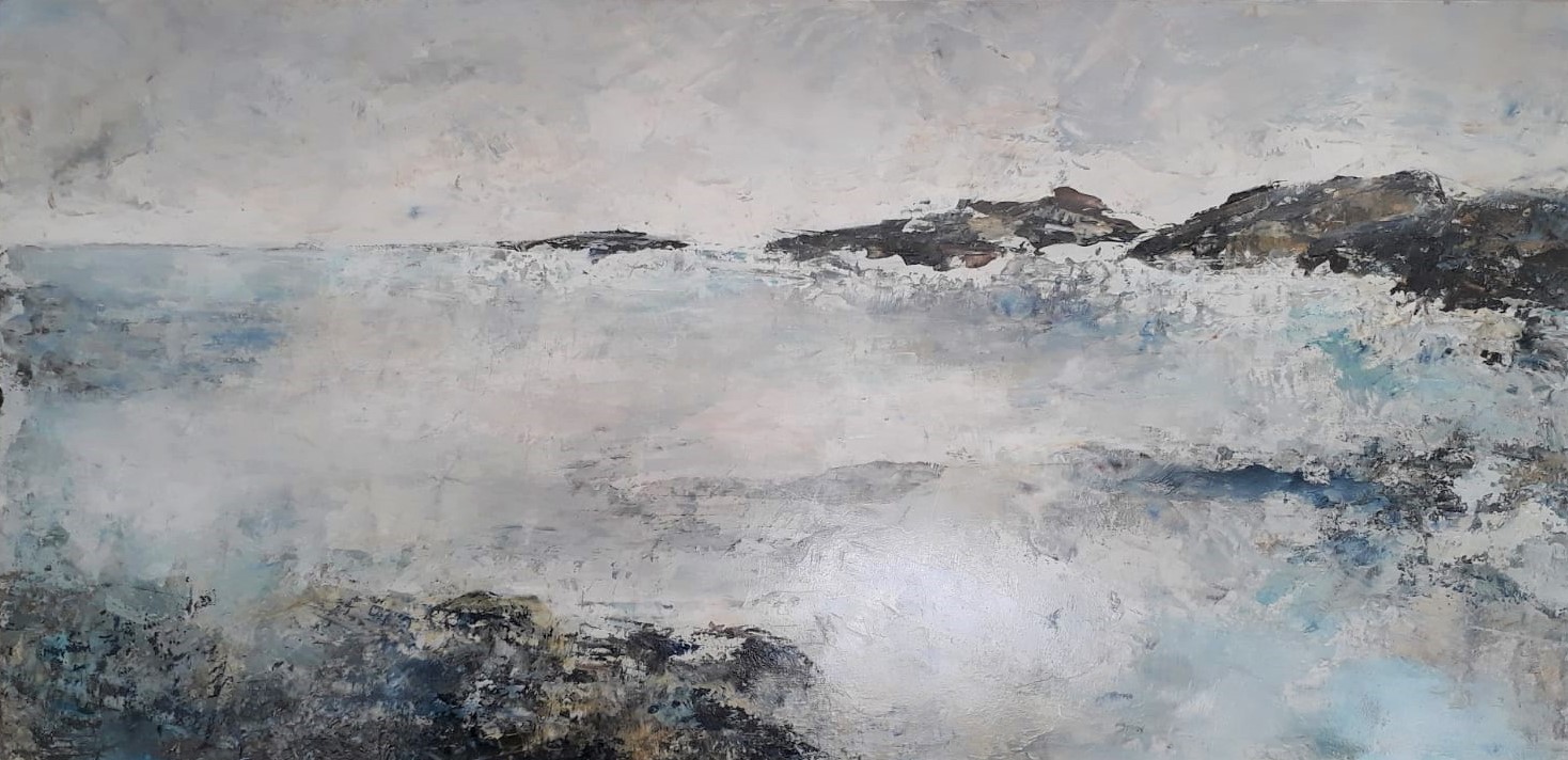 33 x 64: mixed media on wooden panel, incl. frame